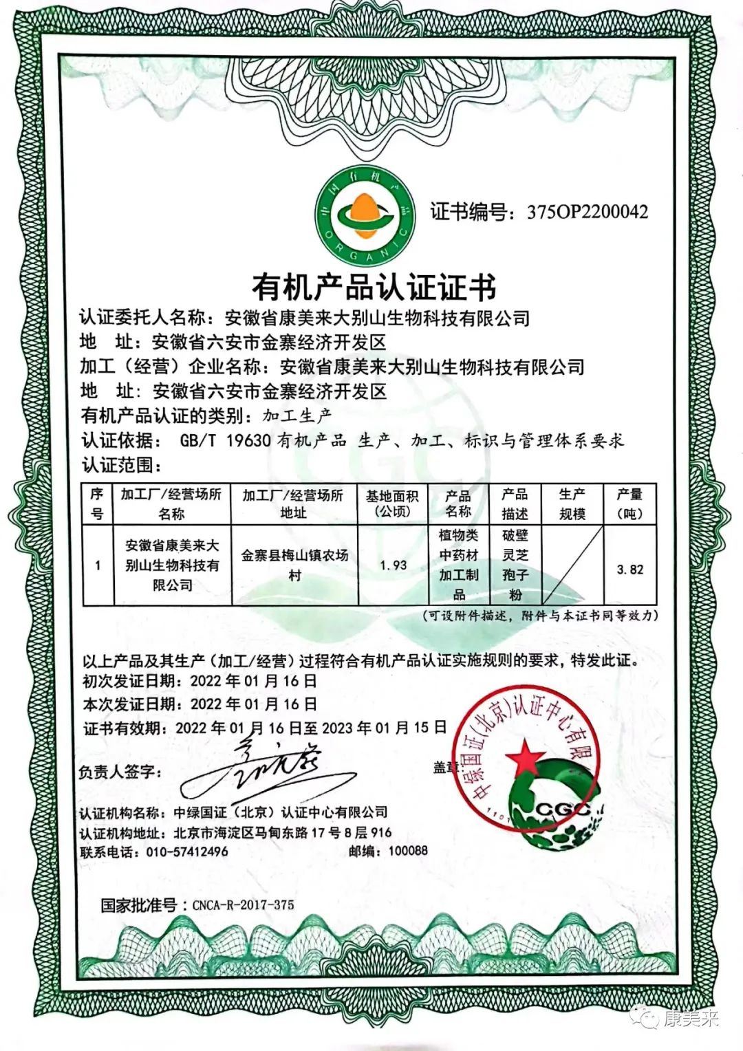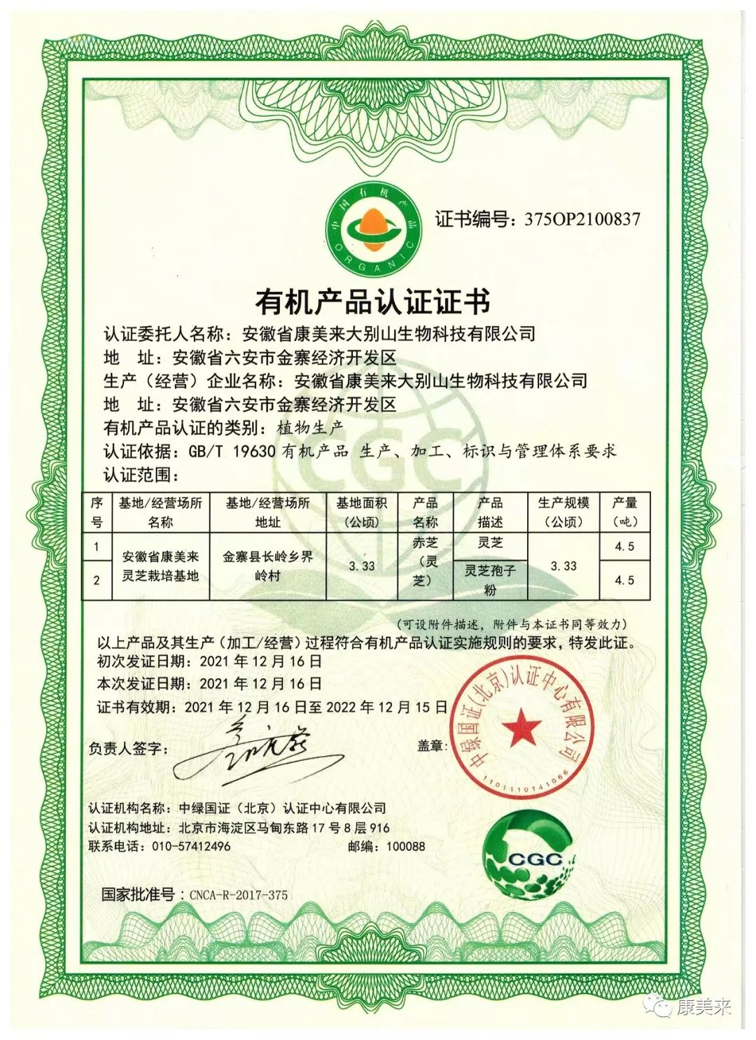 康美來破壁靈芝孢子粉作為國產(chǎn)保健食品的高端品牌,自2016年以來一直致力于靈芝的有機(jī)技術(shù),而且是有機(jī)植物生產(chǎn)+有機(jī)加工生產(chǎn),做到從原料到成品的全鏈條的有機(jī)生產(chǎn),每年通過第三方權(quán)威機(jī)構(gòu)認(rèn)證。