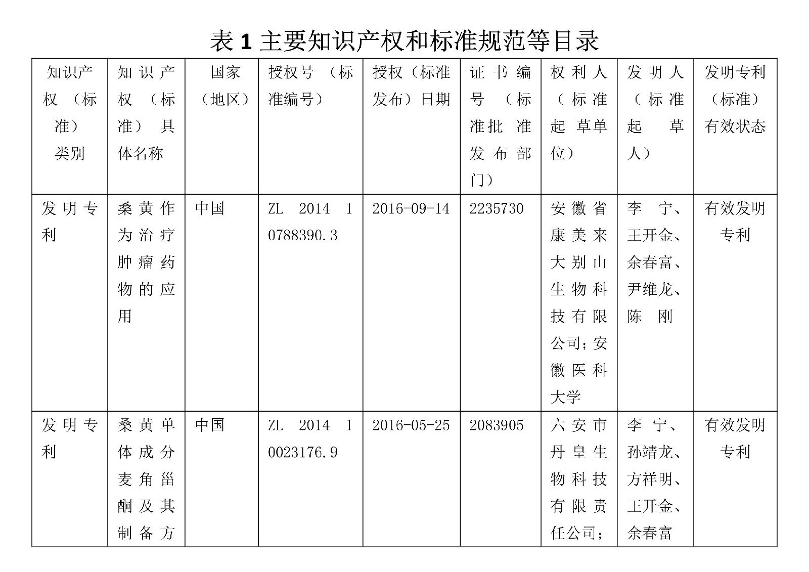 (五)主要完成單位:安徽醫(yī)科大學(xué)、安徽大學(xué)、安徽省森湶谷藥業(yè)股份有限公司、金寨尚臻生物科技有限公司、安徽省康美來(lái)大別山生物科技有限公司、安徽省食品藥品檢驗(yàn)研究院、安徽中醫(yī)藥大學(xué)、安徽農(nóng)業(yè)大學(xué)。