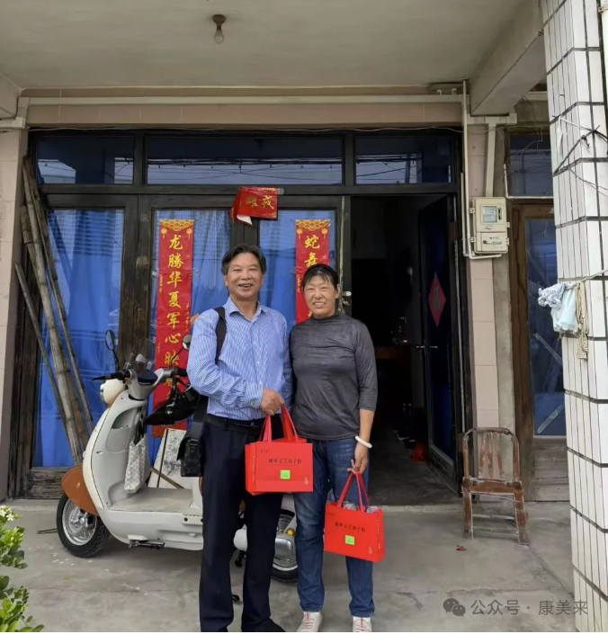 2025年6月4日,余春富董事長專程赴臺州市黃巖區(qū)江口街道回訪創(chuàng)始期消費二十年的老客戶羅樂花女士。