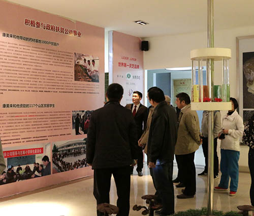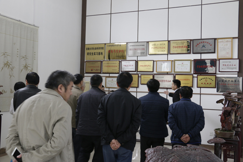 考察組一行首先參觀了康美來公司靈芝文化展館,認真聽取了講解員的相關介紹,詳細了解了公司創業發展歷程、靈芝、桑黃等道地中藥材產業發展和基地建設、自主創新的科技含量、產品品牌打造、直銷指針、企業榮譽等情況。會長萬躍寧對我公司道地中藥材發展給予了充分肯定,希望能夠繼續發揮優越的自然條件,大力發展道地中藥材產業,從而實現中藥材產業快速、健康、可持續發展。