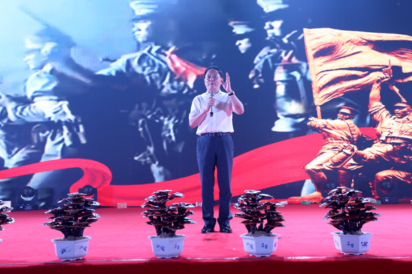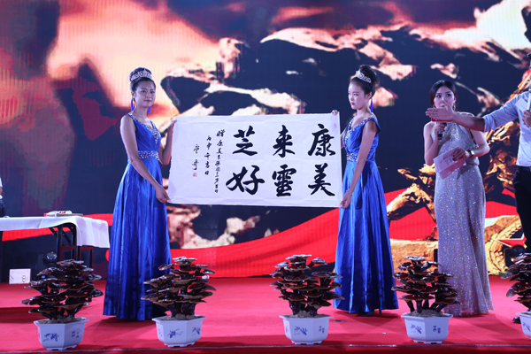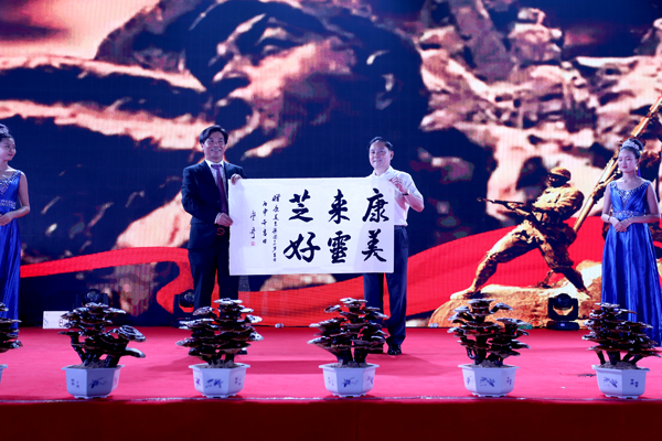 8月21日晚上,康美來12周年慶典文藝晚會在六安舉辦。著名表演藝術家、鄧小平特型演員盧奇親臨六安,登臺助陣,友情出演。“小平同志”認為康美來的事業是一個造福人民群眾健康幸福的崇高事業,是功德無量的事業,是響應黨中央、國務院“精準扶貧”的事業,帶領老區人民脫貧致富。他贊賞并鼓勵康美來扎根大別山敢闖敢冒的精神,號召大家大膽創業,為中國夢而奮斗!作為書法家的盧奇還現場提筆潑墨,書寫“康美來靈芝好”六個大字,字如其人,展現出書法功底,并贈送余春富董事長,慶賀康美來12周歲生日和集團成立。