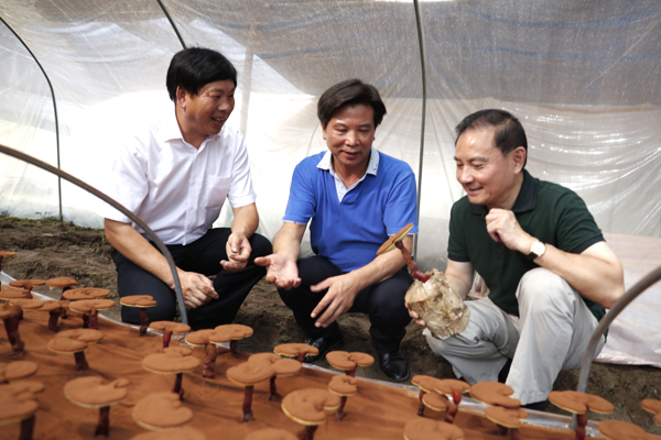 8月22日上午,盧奇在余春富董事長(zhǎng)的陪同下,驅(qū)車前往金寨縣斑竹園鎮(zhèn)、吳家店鄉(xiāng)的大別山靈芝基地,詳細(xì)了解靈芝的仿野生栽培及生長(zhǎng)過(guò)程。