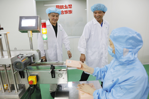 8月22日下午盧奇參觀康美來(lái)金寨工廠,了解靈芝文化及產(chǎn)品生產(chǎn)過(guò)程。