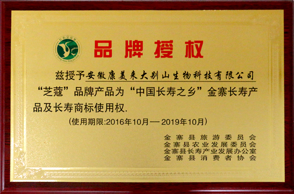 經(jīng)過(guò)縣旅游委員會(huì)、農(nóng)業(yè)發(fā)展委員會(huì)、市場(chǎng)監(jiān)督管理局和長(zhǎng)壽產(chǎn)業(yè)發(fā)展辦公室嚴(yán)格評(píng)選,并經(jīng)縣政府同意,授予安徽省康美來(lái)大別山生物科技有限公司“芝蔻”品牌產(chǎn)品為“中國(guó)長(zhǎng)壽之鄉(xiāng)”金寨長(zhǎng)壽產(chǎn)品及長(zhǎng)壽商標(biāo)使用權(quán)。