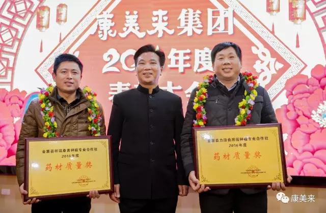 晚會上,康美來對獲得2016年度“優(yōu)秀經理”、“優(yōu)秀科研管理”、“優(yōu)秀車間主任”、“優(yōu)秀班組長”、“優(yōu)秀員工”、“優(yōu)秀新人”、“基地藥材質量獎”的優(yōu)秀干部職工給予了頒獎表彰。