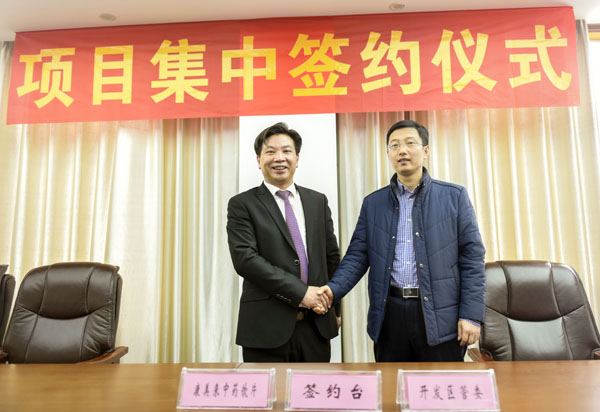 余春富董事長與六安市經(jīng)濟開發(fā)區(qū)管委會副主任閆浩濱出席投資協(xié)議簽訂儀式。