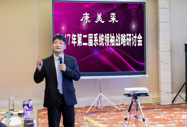 康美來常務副總裁趙巍程就公司2017年度近期的會議培訓安排以及重要活動做了詳細闡述,并在會上激勵各系統領袖必須堅定信念,堅定目標不放松,拼出業績拼出效果。