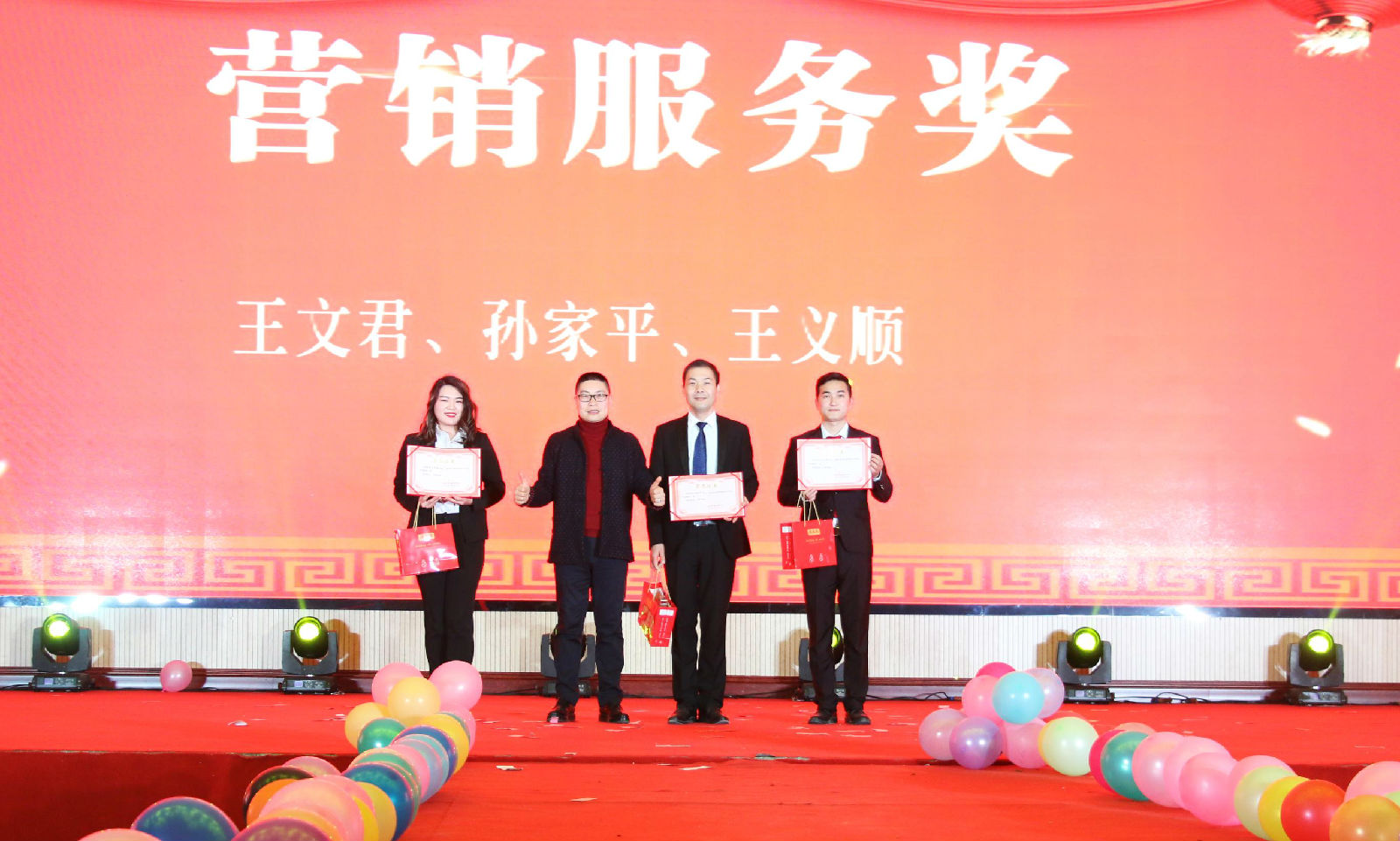 現場一輪一輪的抽獎也讓晚會高潮不斷,驚喜不斷。60名幸運獎,30名三等獎,10名二等獎,5名1等獎,1名特等獎,總計106名家人收獲了公司的幸運獎。