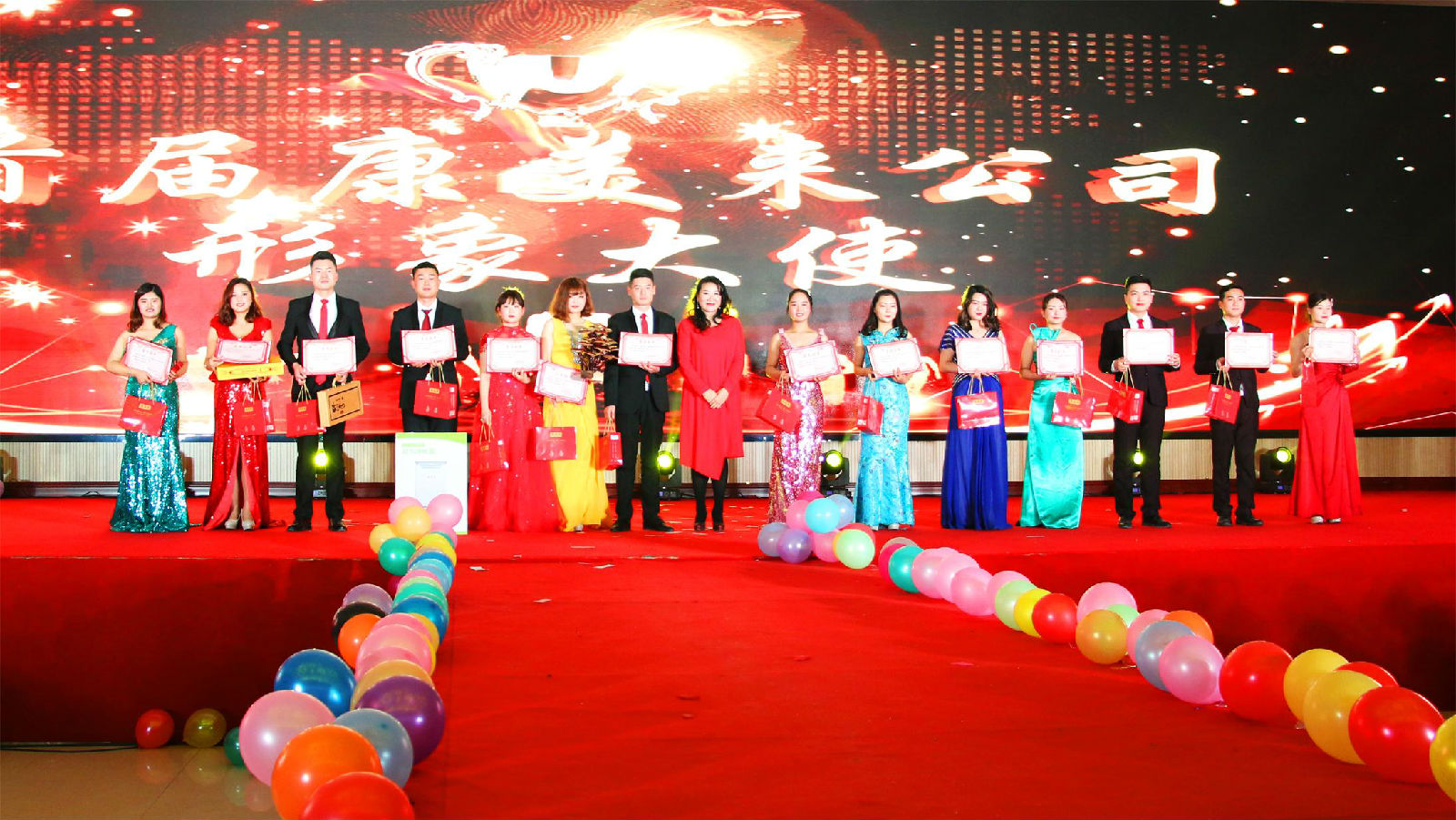 這次盛典我們將表彰大會和新春年會結合,公司又涌現出了很多優秀的人才,在這次表彰大會中斬獲獎項。11個獎項100多位伙伴得到榮耀的表彰和豐厚的獎品。康美來集團董事長余春富親自為獲獎家人頒發獎品。付出與收獲、堅守與成就、忠誠與尊嚴,家人們用行動和結果書寫著光榮與夢想、尊嚴與驕傲!
