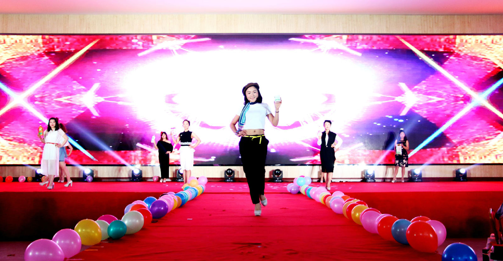 康美來形象大使們帶來的走秀讓晚會進入到高潮,青春靚麗的身影完美演繹出了康美來產品的優勢與魅力!