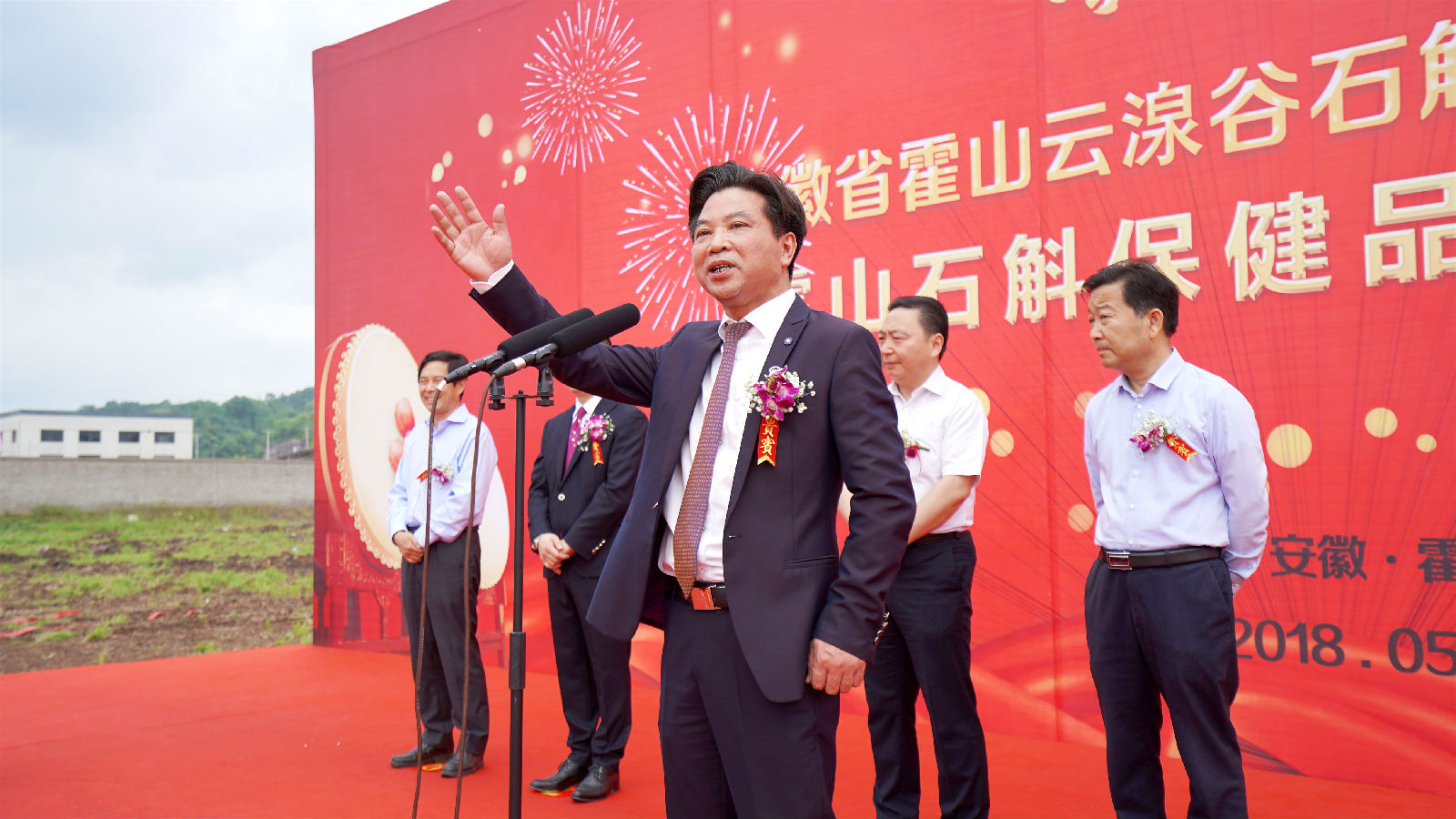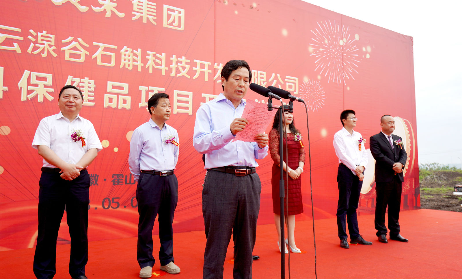 康美來集團董事長余春富在開工儀式上首先致辭,他說康美來集團在霍山投資石斛保健品項目是在六安市委、市政府領導和霍山縣委縣政府的大力支持和幫助下對接落地的,我們之所以在霍山投資項目是因為這里有獨一無二的霍山石斛資源,這里有優越的投資環境。