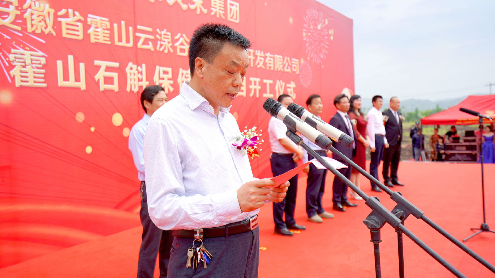 霍山縣委常委、統戰部長華心揚宣布項目開工。參加項目開工儀式的還有六安市財政局副局長費小松,霍山縣人民政府副縣長劉東及政府各部門負責人。