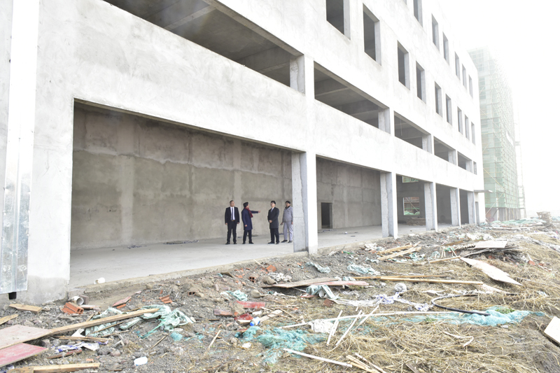 6層高的高檔公寓樓已經(jīng)完成封頂,腳手架林立,預(yù)計(jì)2019年3月前完成墻面工程。