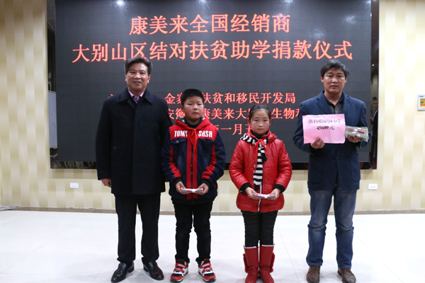 新年伊始,愛心接力。2016年1月5日下午,康美來公司處處歡聲笑語、暖意融融。縣扶貧和移民開發局領導,康美來公司董事長余春富先生和來自沙河鄉中心小學、燕子河鎮樹林小學、桃嶺鄉關山小學的師生們歡聚一堂,隆重舉行康美來公司支持政府“雨露計劃”結對捐資助學儀式。
