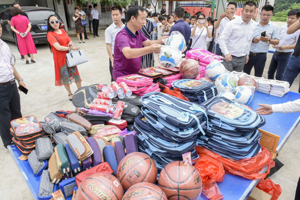 上午10時許,當滿載書包文具和體育用品的汽車開進校園時,立即受到等候多時的孩子們的熱烈歡迎。