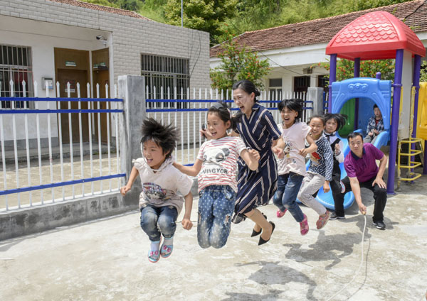 隨后,道合體系負責人與該校的孩子們舉行互動游戲,跳繩的跳繩,打球的打球,歡聲笑語不絕于耳,飄出校園,飛向高山密林。