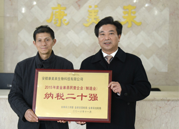 金寨縣授予康美來大別山生物科技 “2015年度金寨