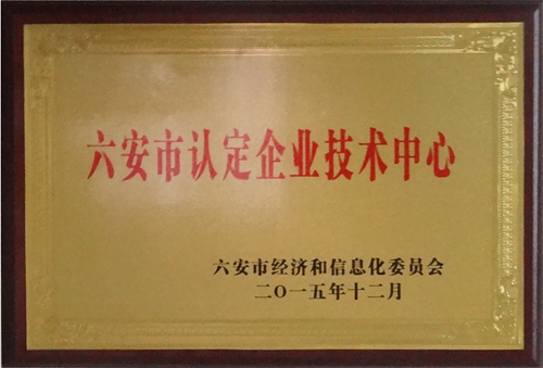 市經信委授予康美來公司 “六安市認定企業技術中心”