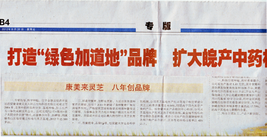 安徽日報報道:康美來靈芝,八年創品牌