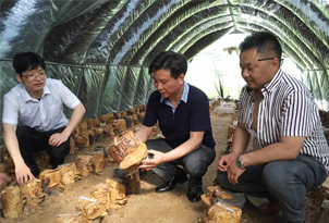 金寨縣農(nóng)發(fā)委領(lǐng)導(dǎo)及產(chǎn)業(yè)中心負責(zé)人一行視察指導(dǎo)康美來有機靈芝種植基地